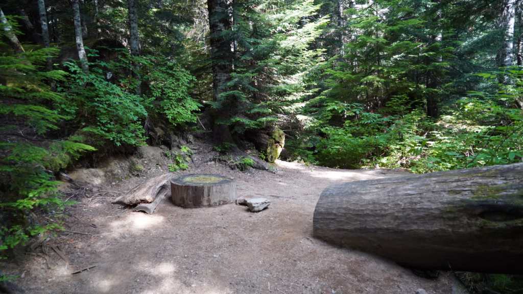 What to Consider When Staying Here: Eagle’s Roost is located a tenth of a mile downhill from the Spray Park Alternative, off the primary Wonderland Trail. This campground itself is dry.